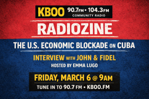 This Friday, March 6 at 9am on Radiozine, tune in to KBOO Community Radio** for a timely interview about the intensifying U.S. economic blockade on Cuba. Emma Lugo speaks with local organizers John and Fidel about the growing impact of U.S. policy on the island nation and what it means for people both in Cuba and here in Portland. The conversation explores the history of the 64-year blockade and the latest developments escalating economic pressure on the Cuban government.