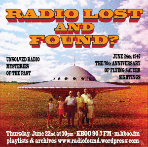 Radio Lost and Found commemorates the 70th anniversary of this portentious sighting, perhaps ruefully, as saucer sitings have been on the decline since the 1970s, thanks either to a remarkable advancement of alien technology or Hollywood production companies finding the classic saucer shape passe.