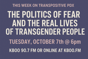Please join us for Transpositive on KBOO Community Radio this Tuesday, October 7th at 6pm.